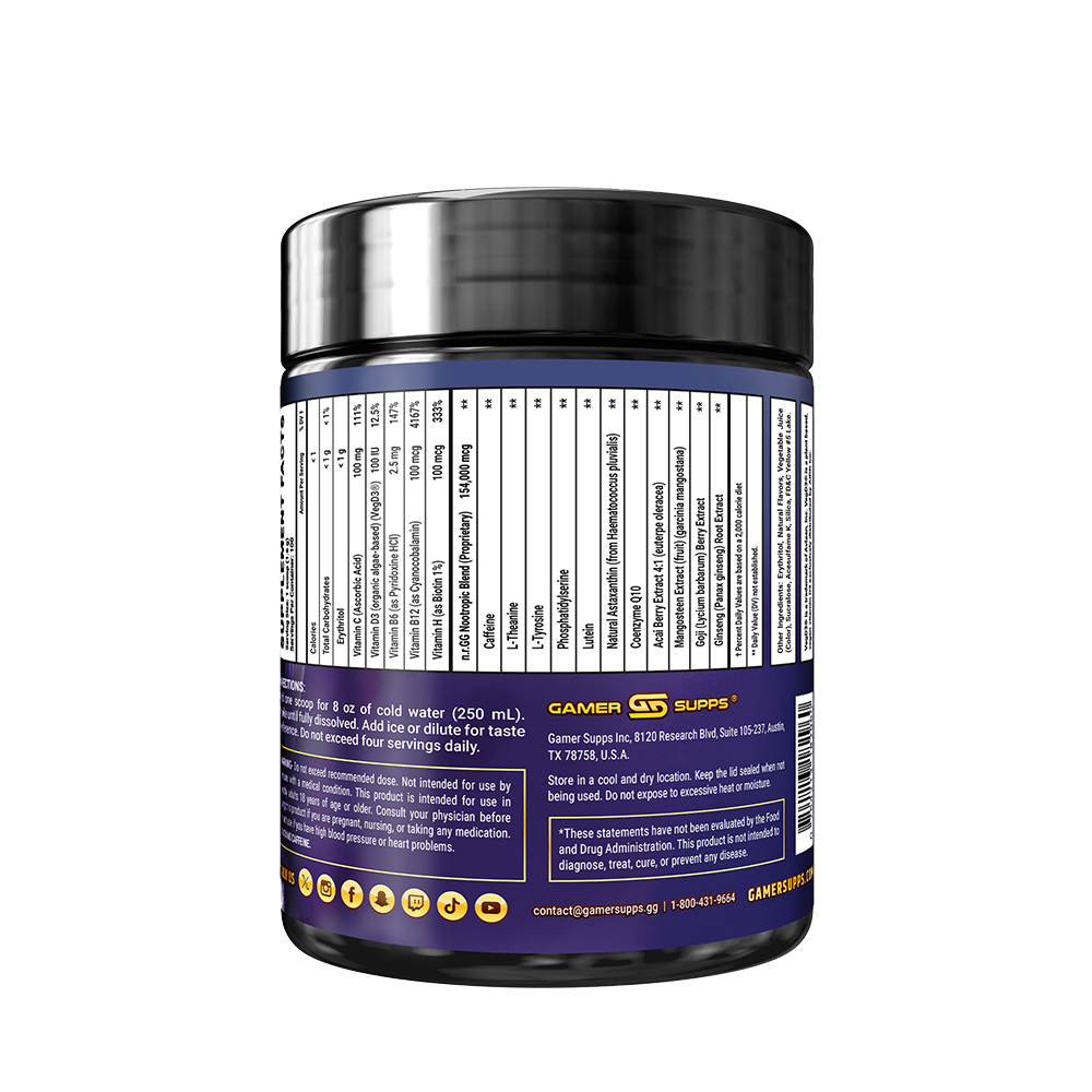 GG is the ultimate energy and focus formula designed to Level Up Your Gaming. The highest quality ingredients make up an energy formula that mixes completely and provides a healthier and more cost effective energy drink.